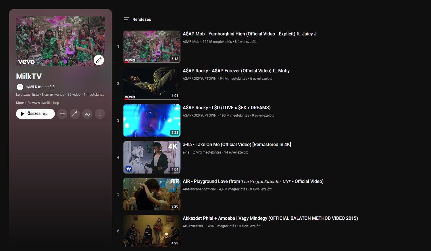 A curated playlist of music videos.